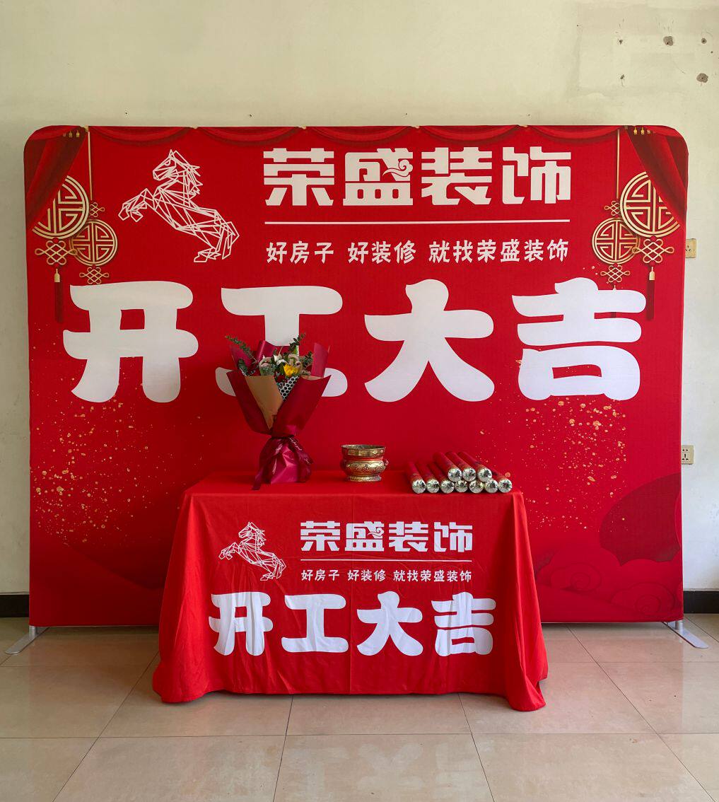 The start of the auspicious ceremony celebration fast curtain show background cloth signature place live broadcast background wall advertisement pull net display rack customization