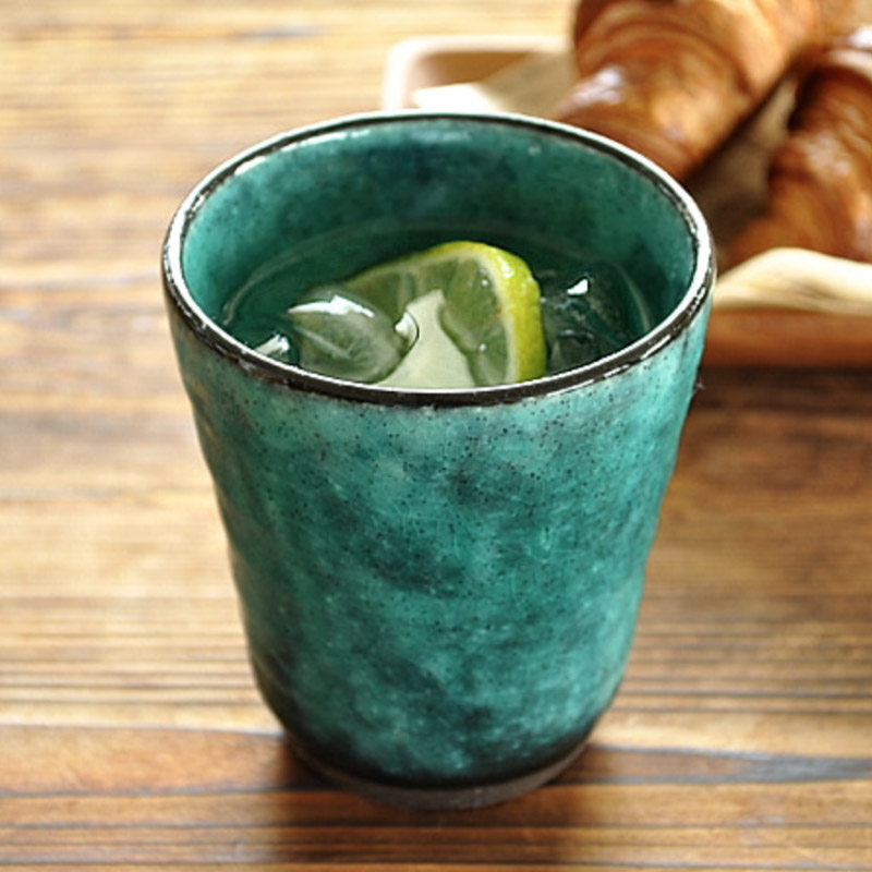 Kokugawa Machi House Japan Made Glazed Under color Turkey Blue artisanal retro style Frothed Beer Cups Wine Glasses