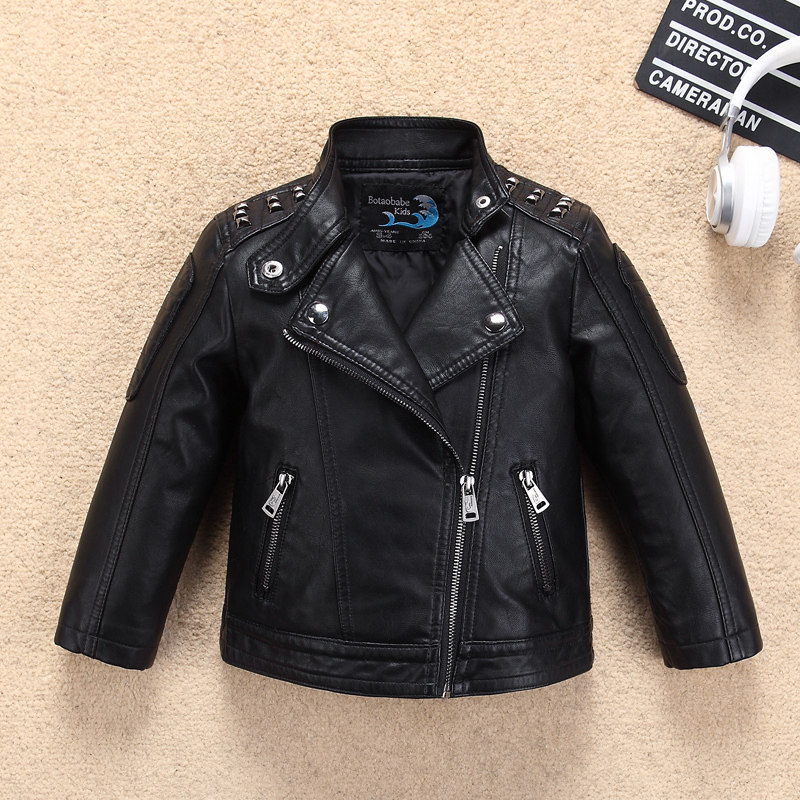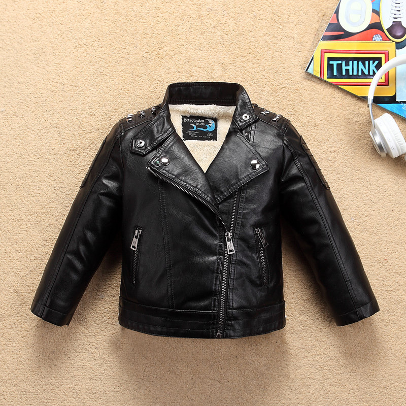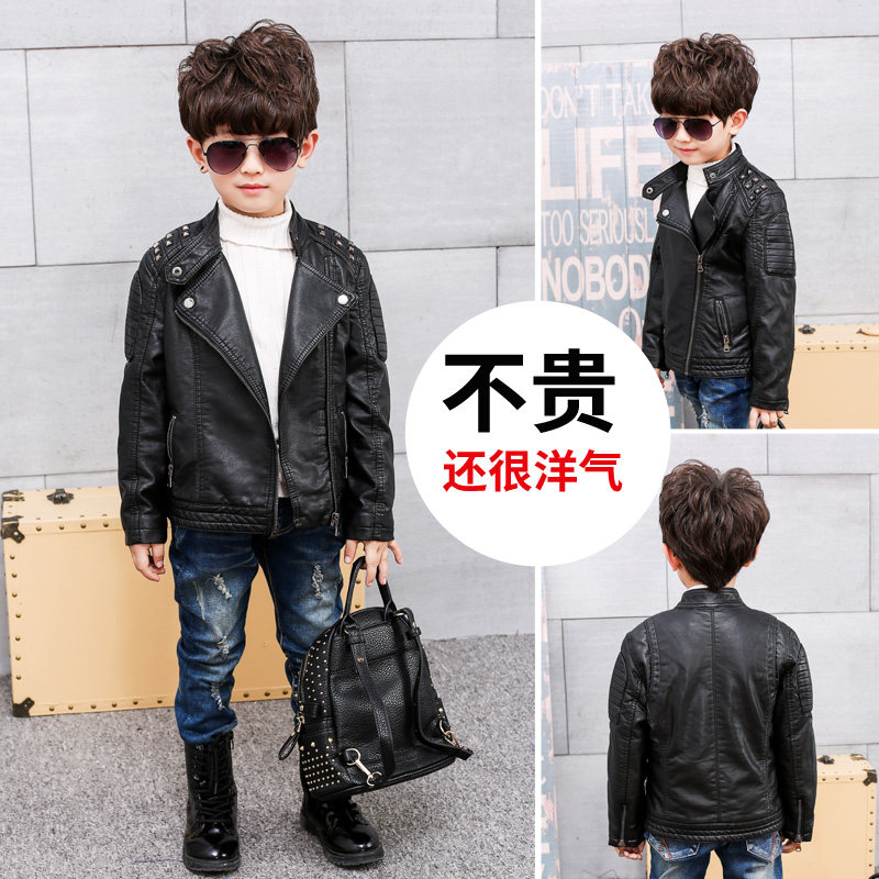 Children's clothing boys and girls leather jacket 2022 autumn and winter children's Korean version of the big boy foreign style motorcycle leather jacket tide