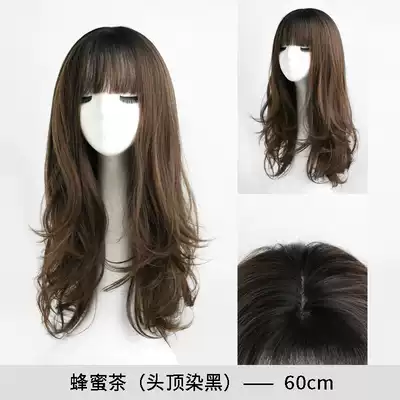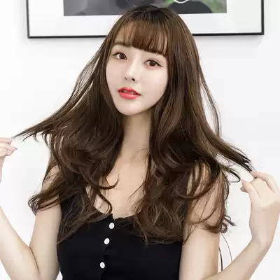 Whole wig female Qi Liuhai long hair temperament big roll Korean curly hair top dyed black full head wig