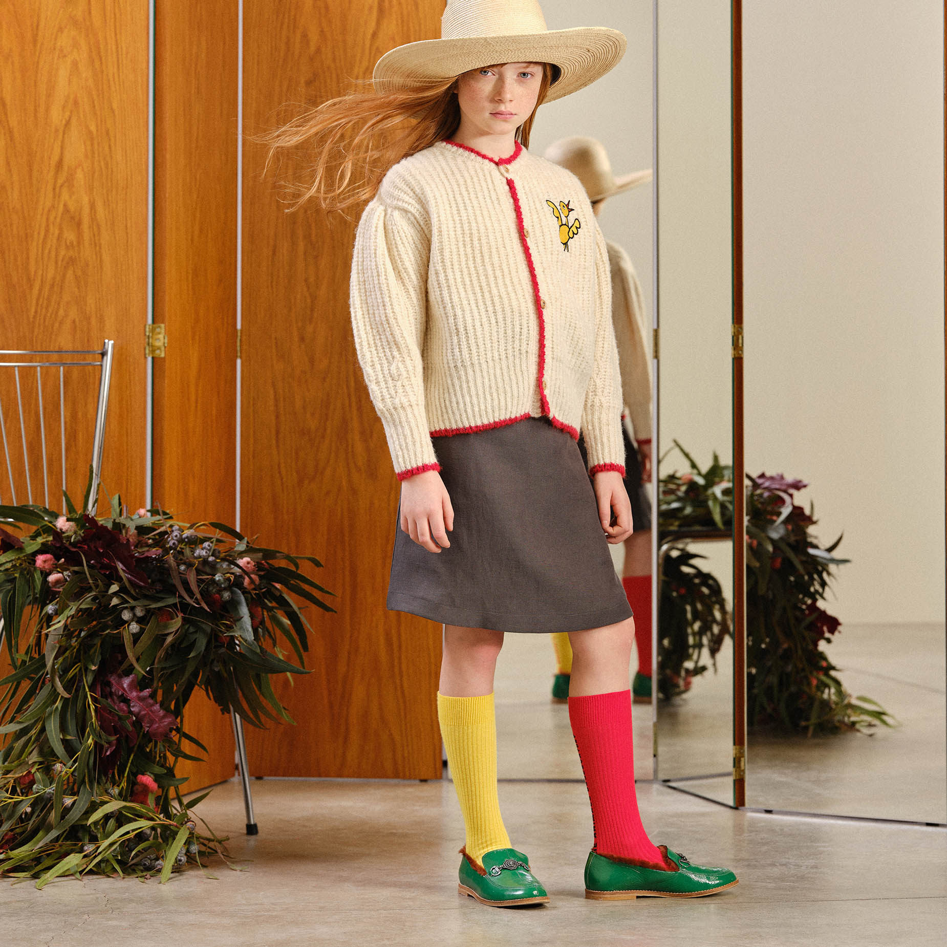 3N does not refund TAO new children's retro bubble sleeve knitted sweater splicing cocoon half skirt
