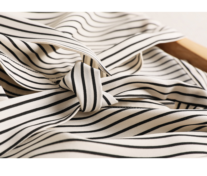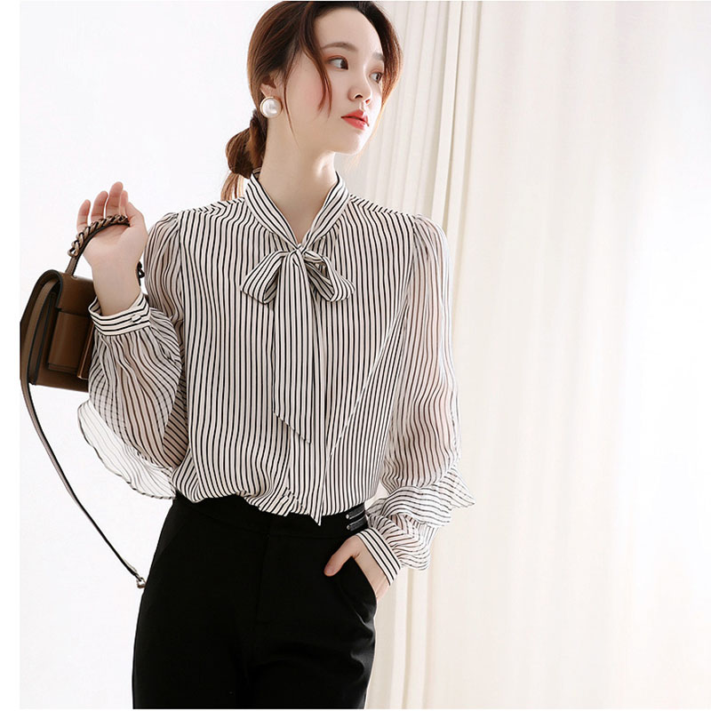French style light and familiar style temperament ladies streamer striped chiffon shirt female design sense ruffled long-sleeved top