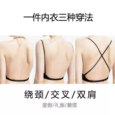 Beauty back underwear women's big U-shaped sling small chest gathered without steel ring sexy cotton triangle cup bra summer thin