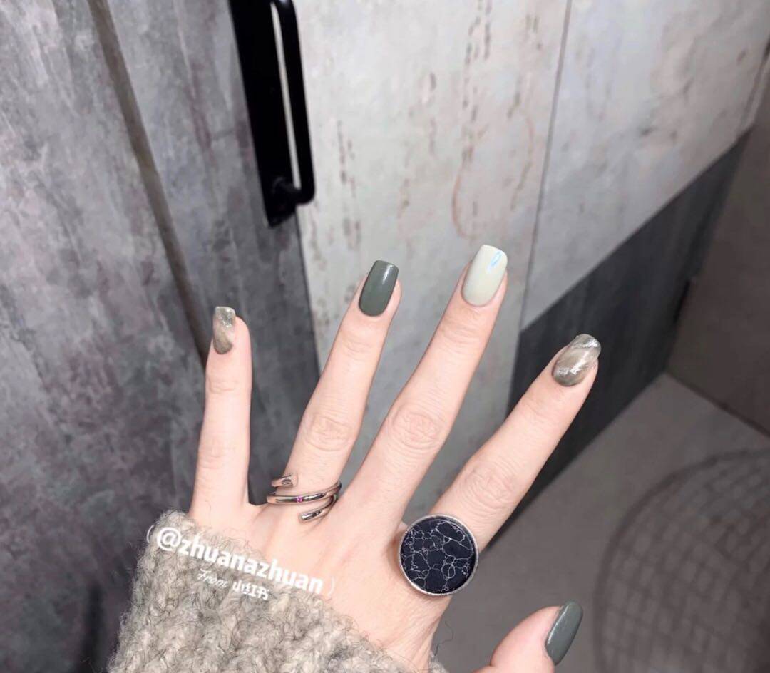 Manicure film finished product Little Red Book fake nail stickers dark green smudged marble whitening INS manual phototherapy wearable armor