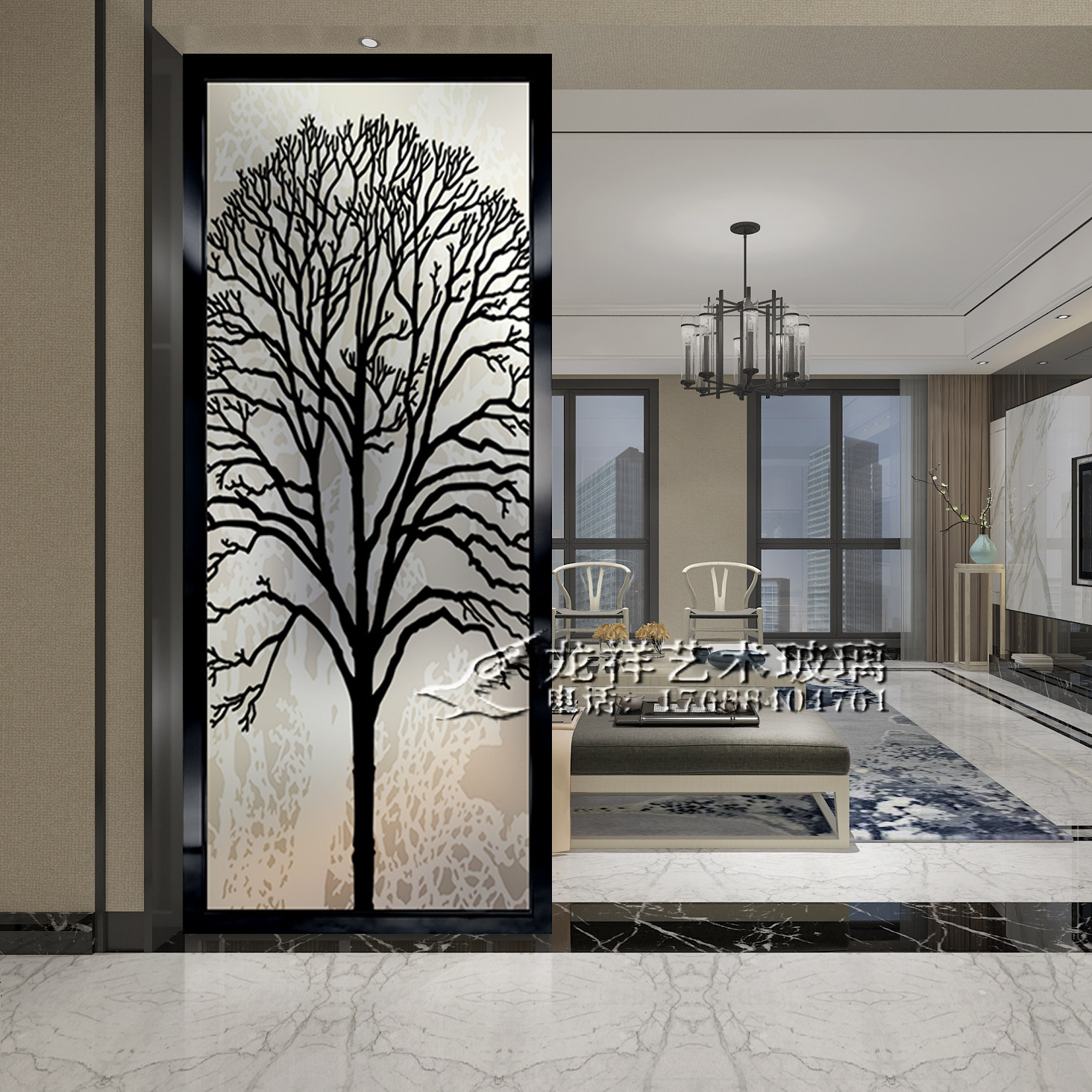 Modern minimalist glass screen partition wall Living room decoration small apartment bedroom blocking home entrance porch Light luxury