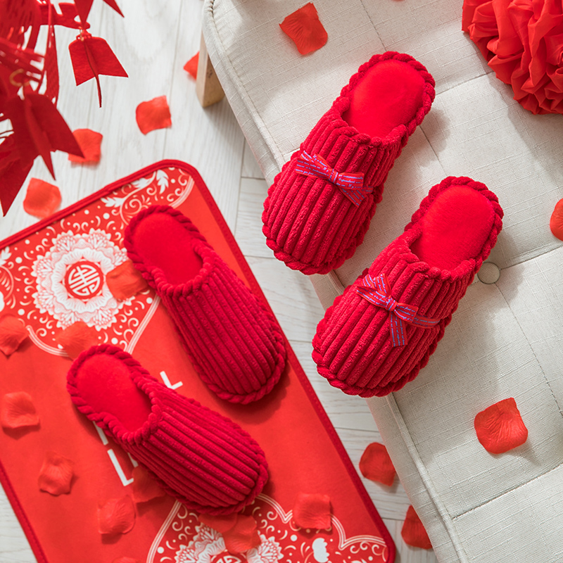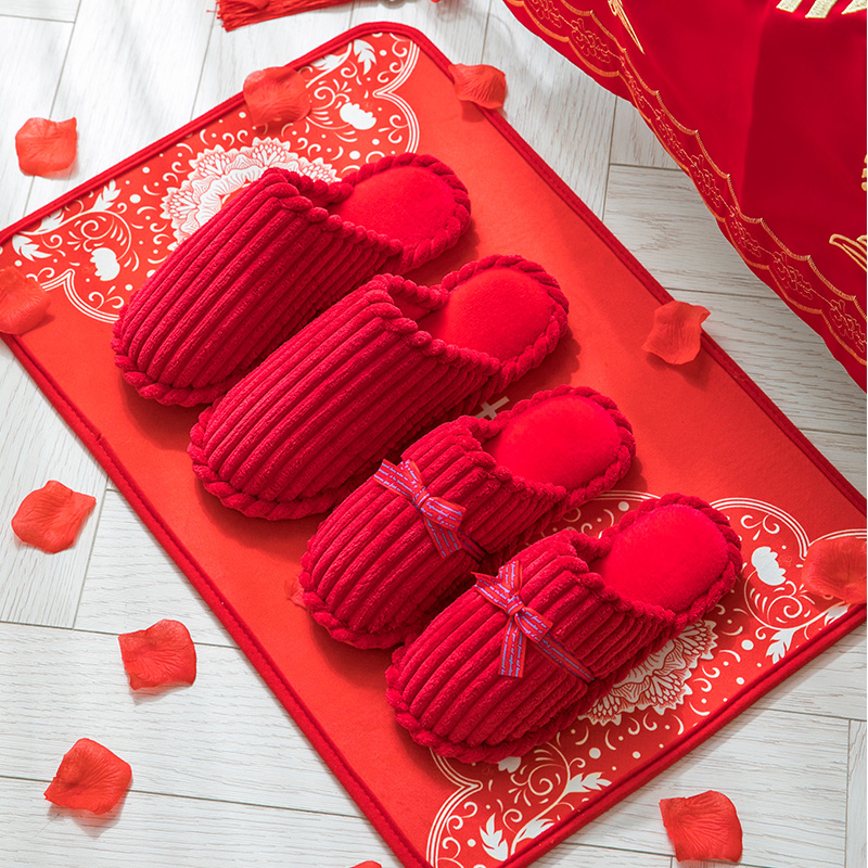 Buy one for a wedding slippers couple Hei red couple Wedding Celebration Home Bridegroom Groom Home Thick Undercotton Slippers