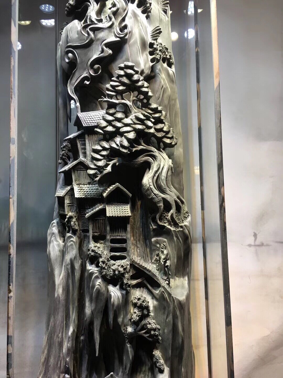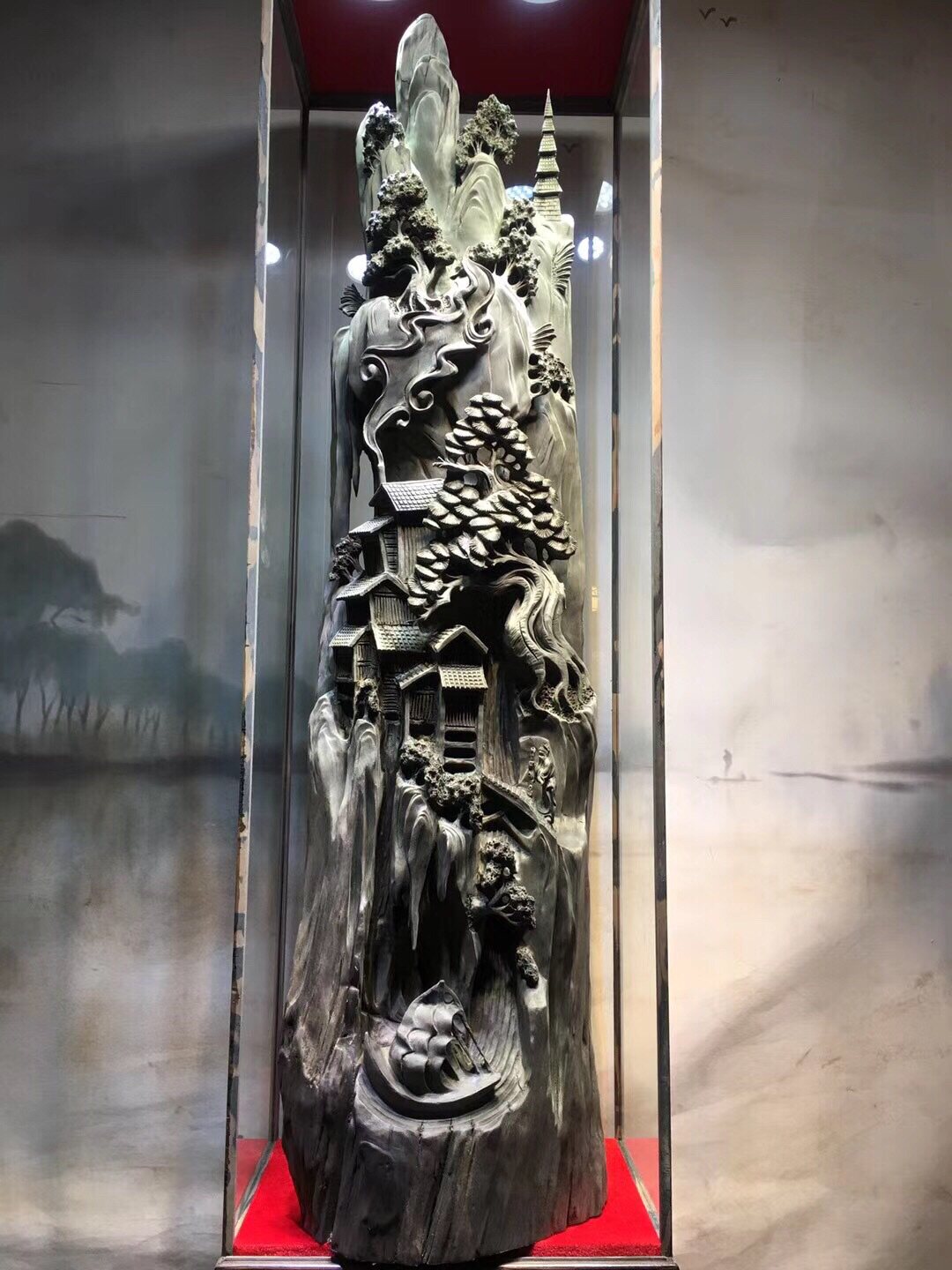 Root carving wood carving pendulum with deep mountain visiting friends and landscape painting shady gold silk Nan wood ancient color ancient and fragrant gift giving home swing decoration