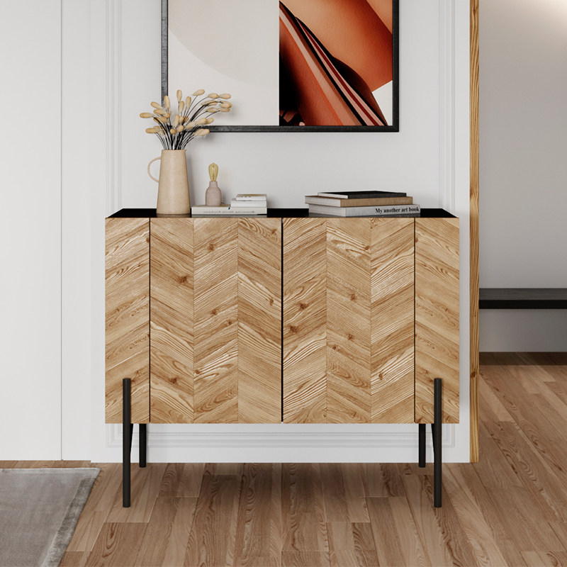 Nordic light luxury dining side cabinet living room side cabinet small apartment household solid wood locker modern minimalist entry porch cabinet
