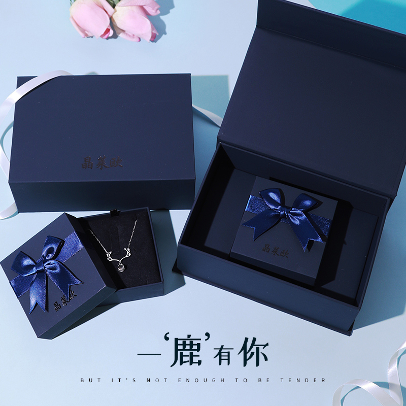 A deer have you necklace blue gift box (custom words) a deer with you necklace blue gift box (custom picture section) a deer with you necklace small deer gift box (non-custom made) a deer with you