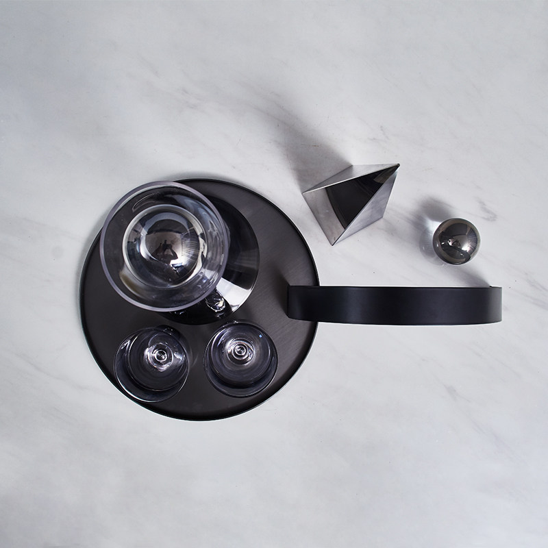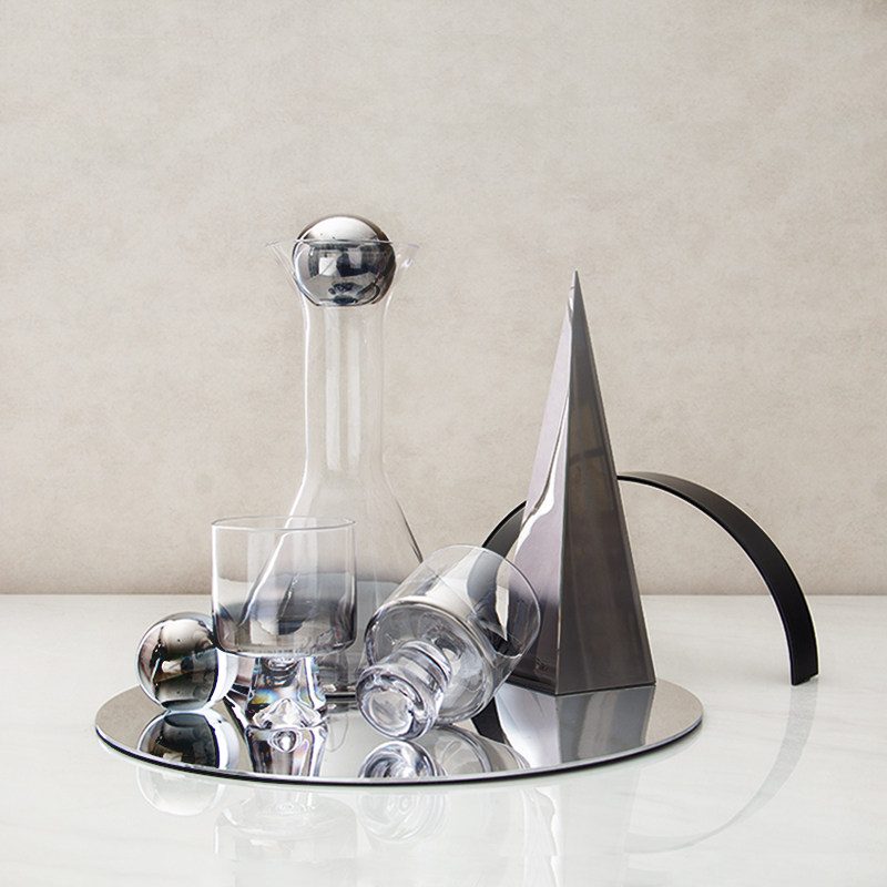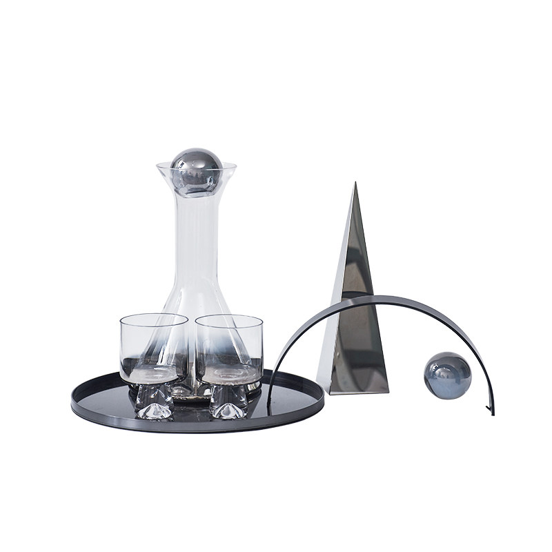 Wine set series 0052 (package one) wine set series 0052 (package two) stainless steel silver round tray stainless steel silver mirror chassis gray cold kettle smoke gray light luxury thick water cup (single