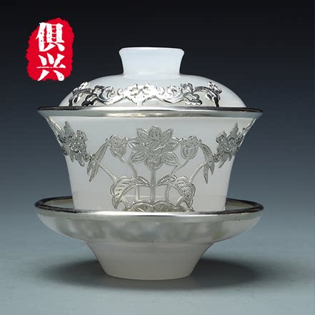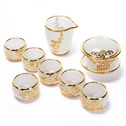 High-end Gold Inlaid Jade Glazed Jade Porcelain Kongfu Tea With Chinese Wind Inlaid Silver Cover Bowl Tea Cup Fair Cup Package of Courtesy Kit