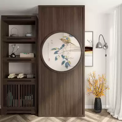 New Chinese screen partition living room bedroom shielding home entrance entrance gate classical Zen solid wood flower and bird seat screen