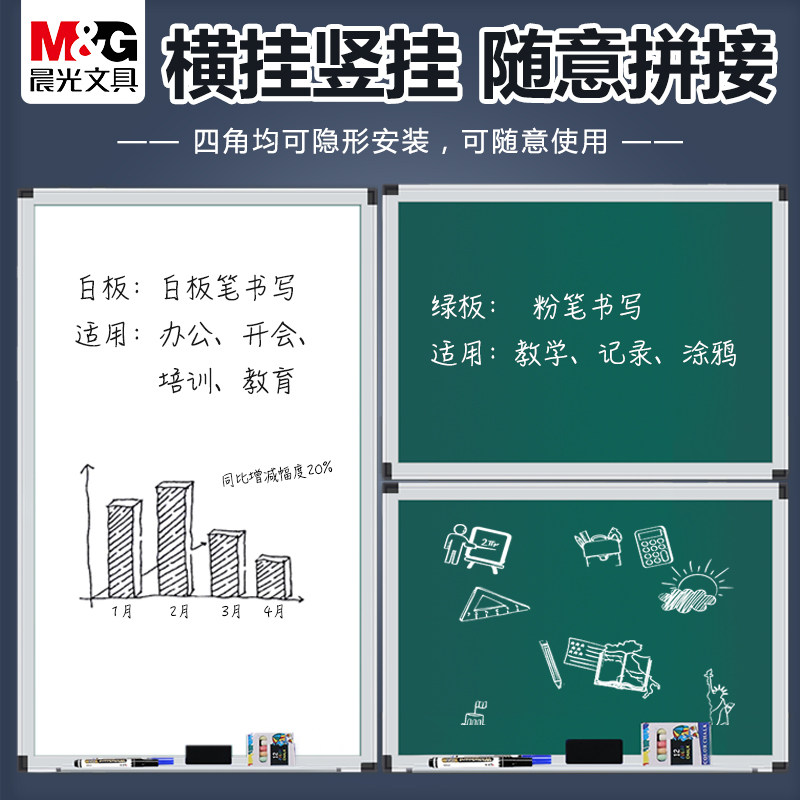 M&G standard type single-sided hanging whiteboard M&G round-edge double-sided hanging white board M&G round-edge hanging white-green board M&G round-edge hanging white-green board + 10 whiteboard pens M&G economic bracket type single-sided green board M&G high-end positive white anti-green bracket type