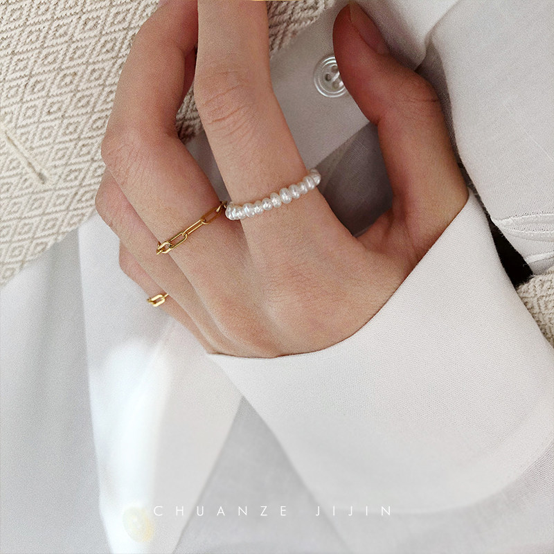 Ultra - hundred - and - sized American imports 14k Bag Gold mini - shell mini - pearl ring rice stacked fashion