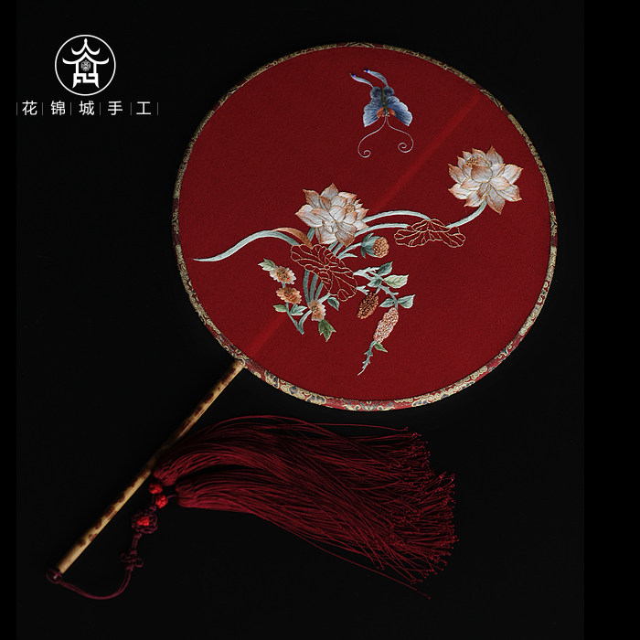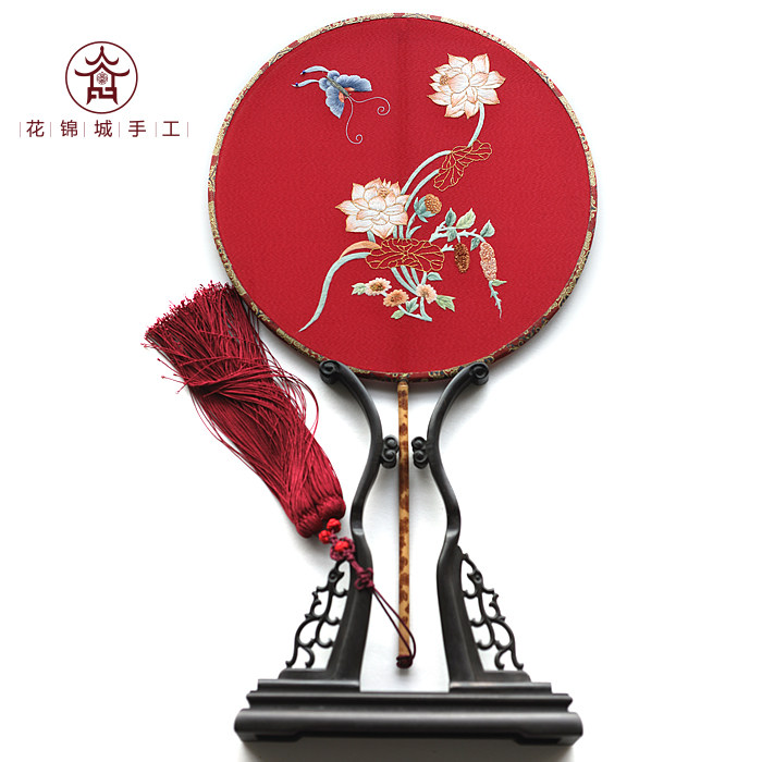Huajincheng double-sided Su embroidery fan ancient fan light luxury Chinese style gift group fan Hanfu wedding fan lotus fan