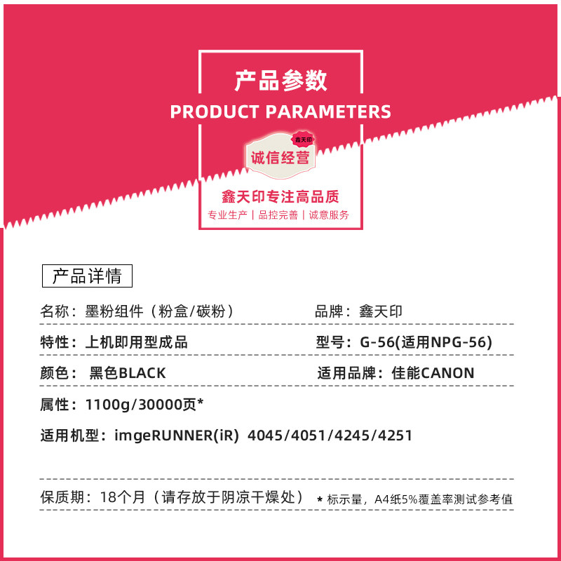Xin Tianyin Applicable Canon NPG-56 powder box G56 toner iR 4045 4051 4245 4245 4251 toner component CANON photoprint print carbon powder GPR