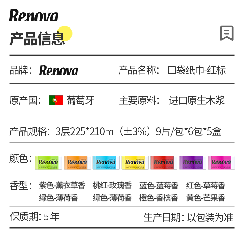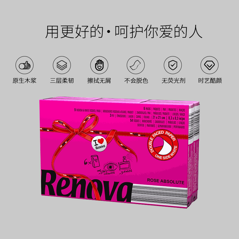 Renova Paper Handkerchief small bag portable napkins aperitif aperitif paper with peach red roses 5-30 packs