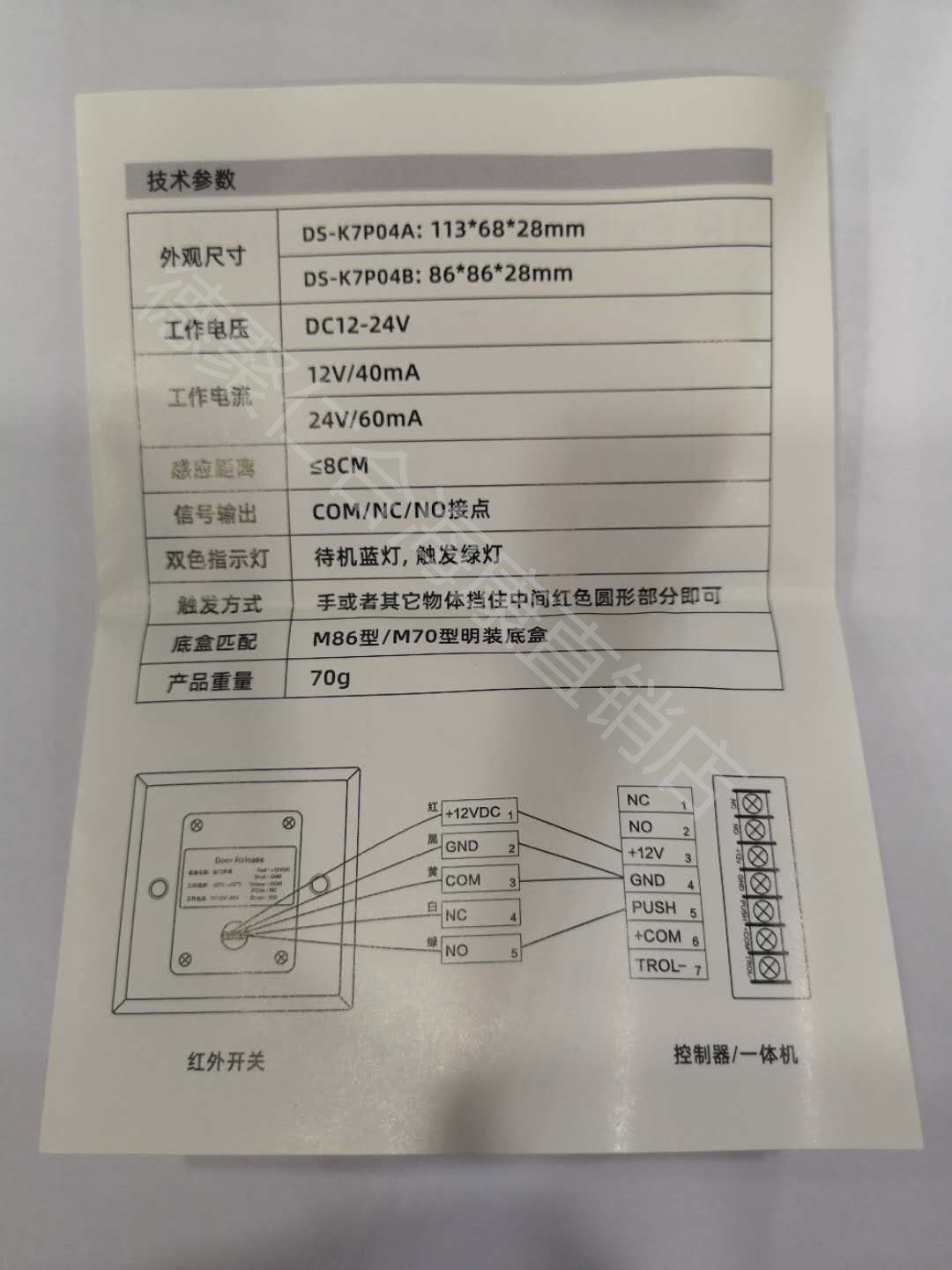 SeaConway sees DS-K7P04A DS-K7P04B access control system out of the door button switch