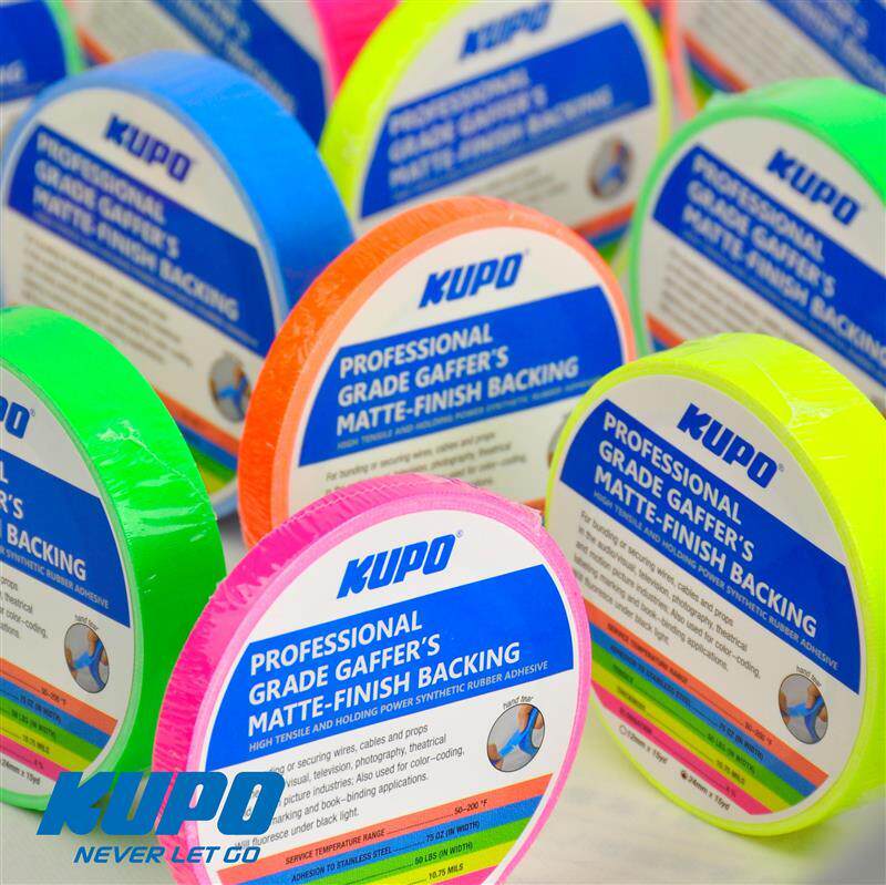 KUPO Stage Film and TV 12mm fluorescent bright colour booky adhesive tapes Import matt crew Carpet theater marking number