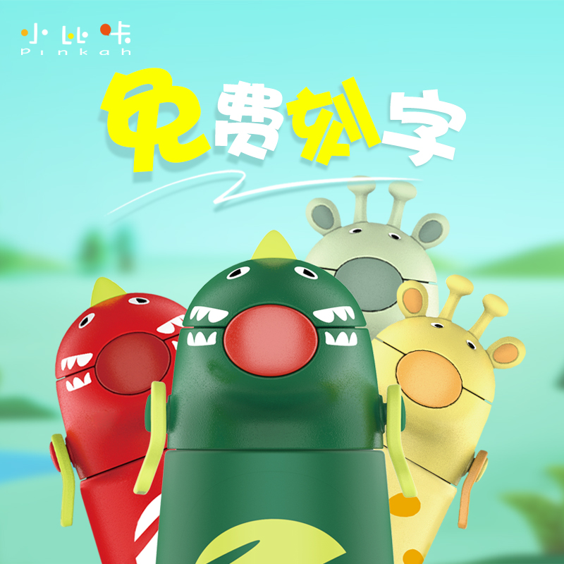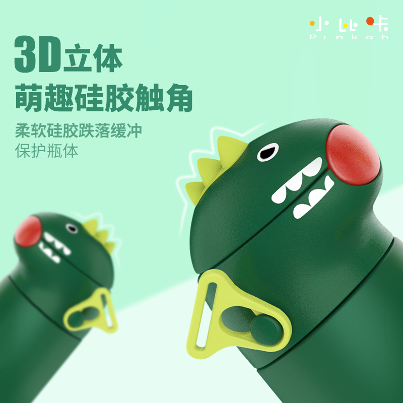 Small Bika Children's thermos cup Straw cup High face value baby portable kettle Kindergarten primary school student dinosaur water cup