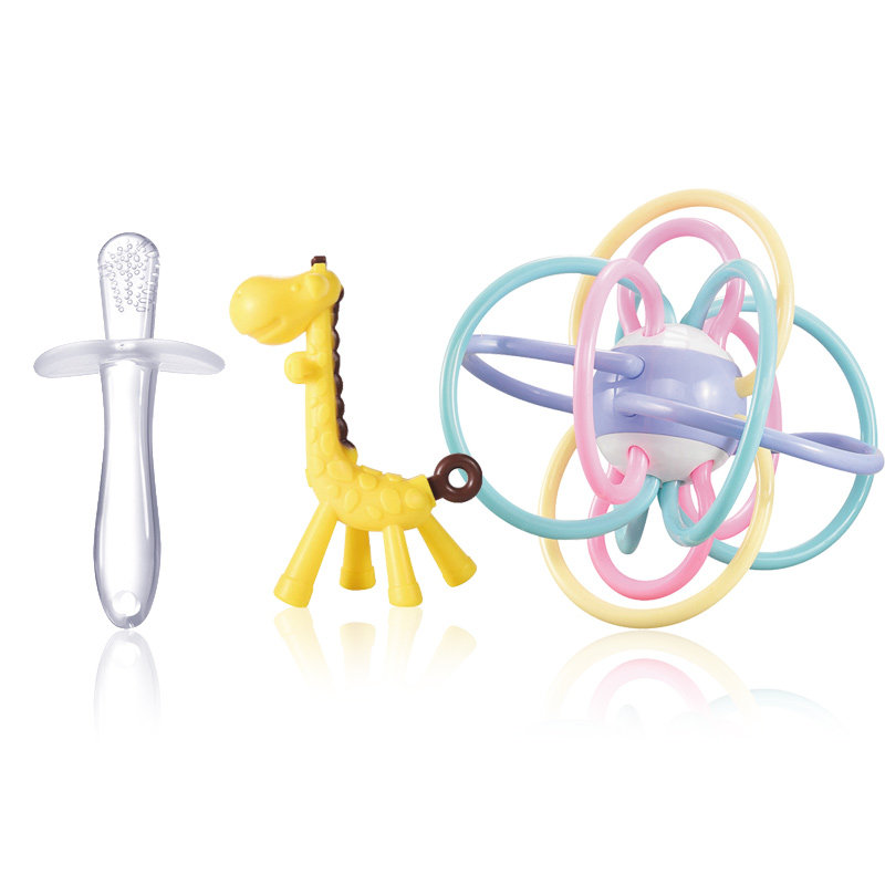 Baby deer teether teether stick baby Manhattan hand grip ball teether ball can be boiled to prevent baby from eating hand bite Ken toys