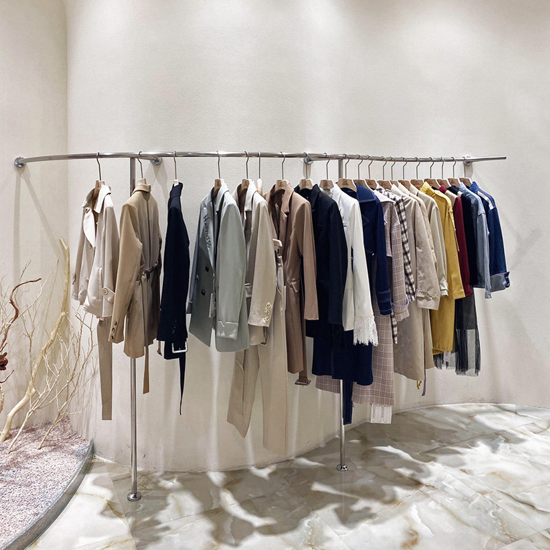 Clothing store display frame wall hanging rack floor clothing rack stainless steel silver children's clothing rack