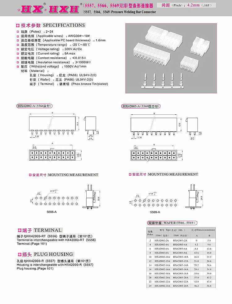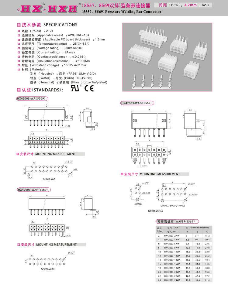 HXH connector 5569(4 2mm) bar connector 5569-5A straight pin pack 1K