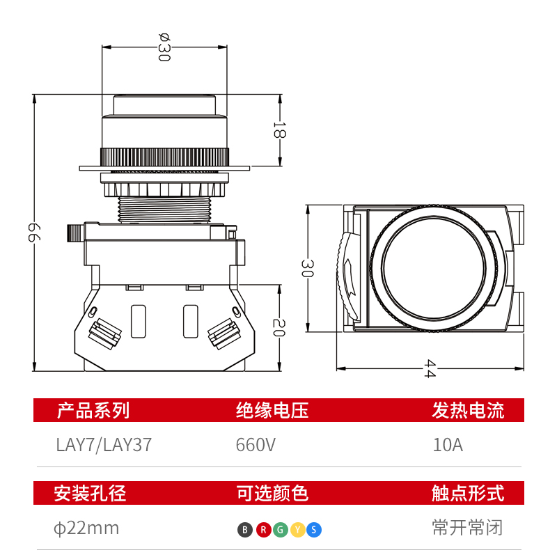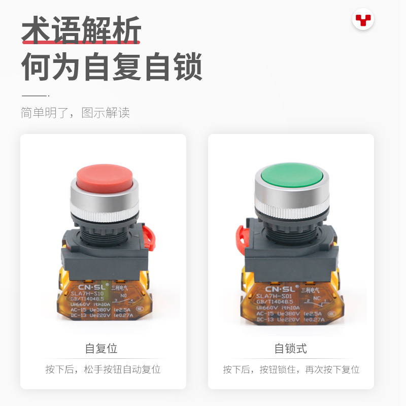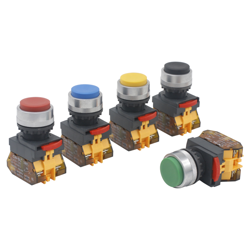 Red self-reset button (one open and one closed) Green self-reset button (one open and one closed) yellow self-reset button (one open and one closed) black self-recovery