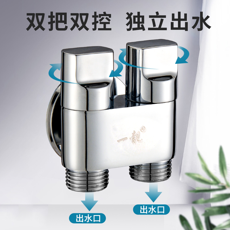 Partner full copper toilet triangular valve in 2-out double-use washing machine tap tee spray gun suit water distributor