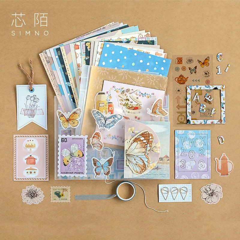 Core Strangler Ledger Material Paper Big Gift Package Suit Little Fresh Hand Ledger stickers DIY Handbooks This background Paper Printing ins Decorative Girl Hearts Beating Bottom Retro Collage of Vitriol Paper Bronzed Convenience Stickers