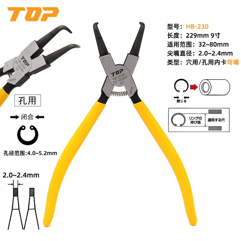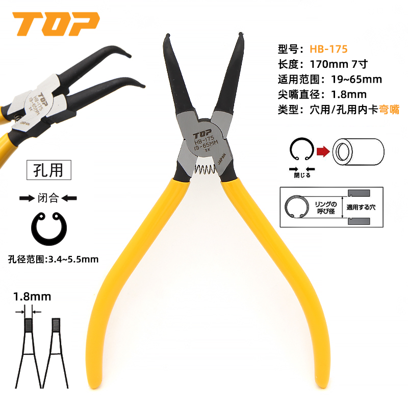 Snap clamp inner clamping hole with expansion bending mouth pliers snap ring pliers internal card tension C type clasp card Yellow pliers large number of card yellow pliers