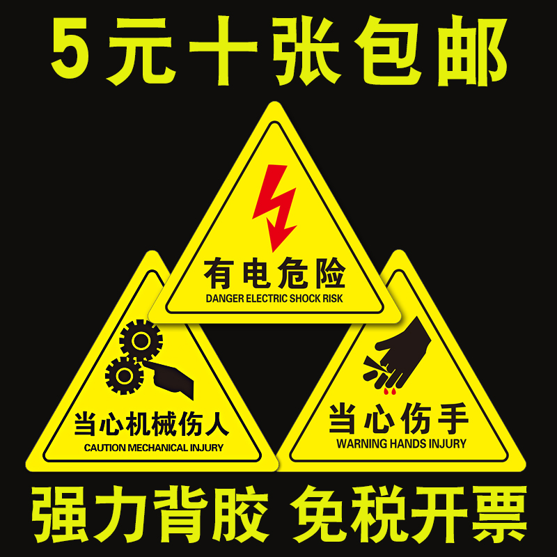 There are electrical hazard warning stickers Watch out for electrocution ID beware of mechanical hurtful high-pressure dangerous distribution box warning stickers note safety sign plate logo pvc lightning triangle support customisation
