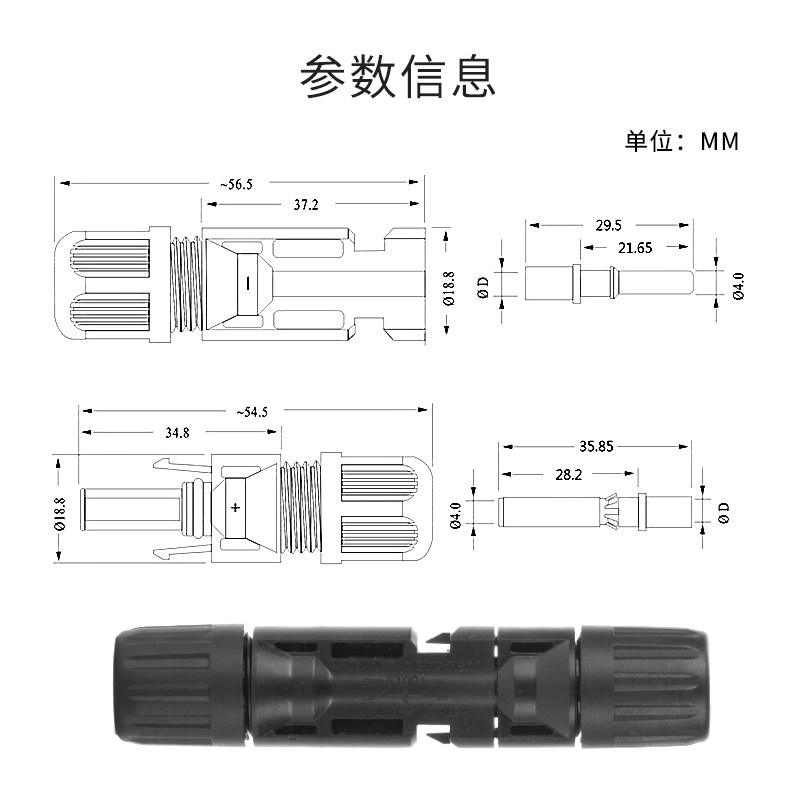 MC4 male and female set with core MC4 male head without core MC4 female head without core Y-type three-way one point two A pair of Y-type four-way one point three A pair of Y-type five-way one point four A pair of T-type