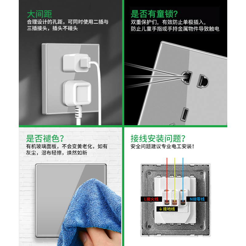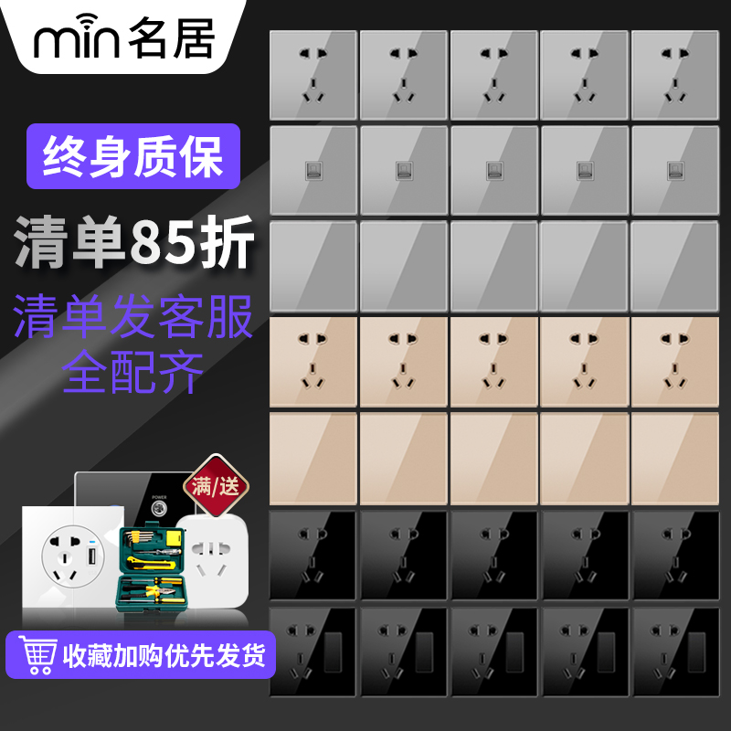 Mingju type 86 wall plexiglass switch socket package one open 16A large plate household five holes 20pcs