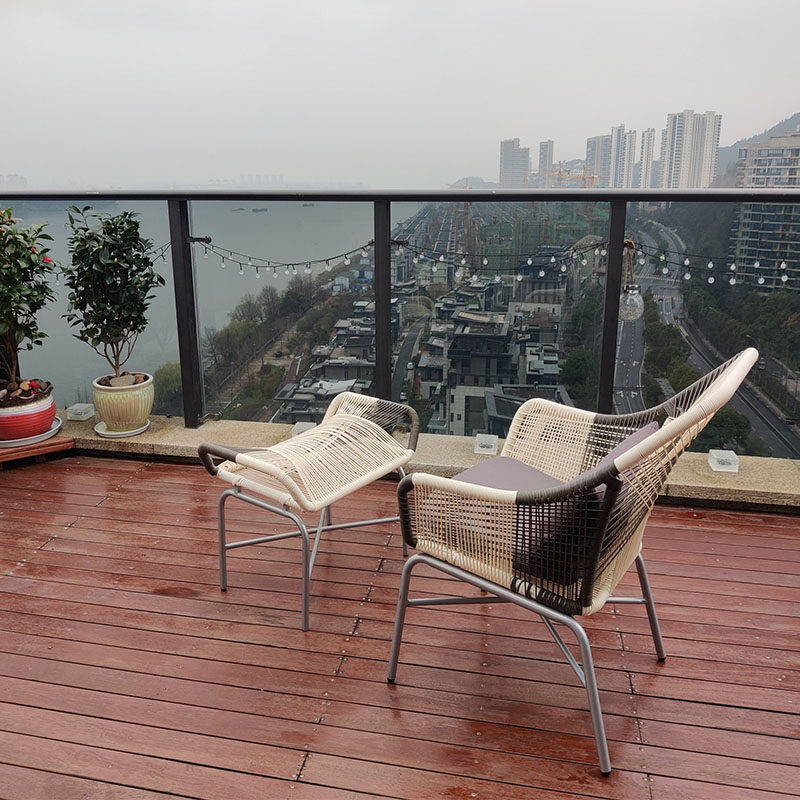 Outdoor table and chair afternoon tea table small table and chair garden rattan single chair lazy rattan chair three-piece modern net red