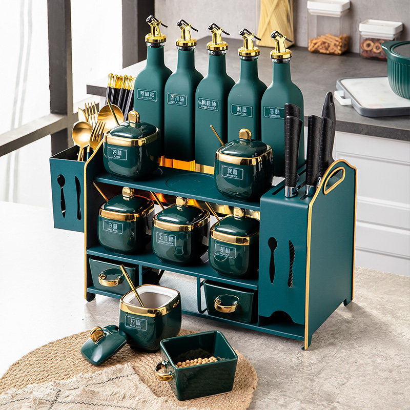 Kitchen home wrought iron chopping board rack glass oil pot chopsticks barrel placed knife holder storage seasoning vinegar pot jar