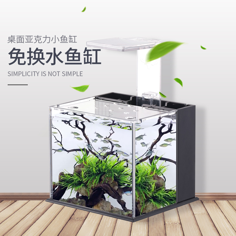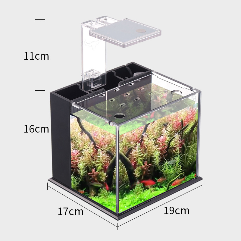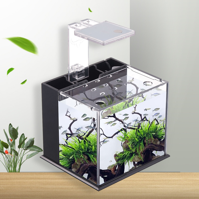 Office desktop fish tank aquarium water group eco-creative fish tank small acrylic with lid gold fish tank LED light build up