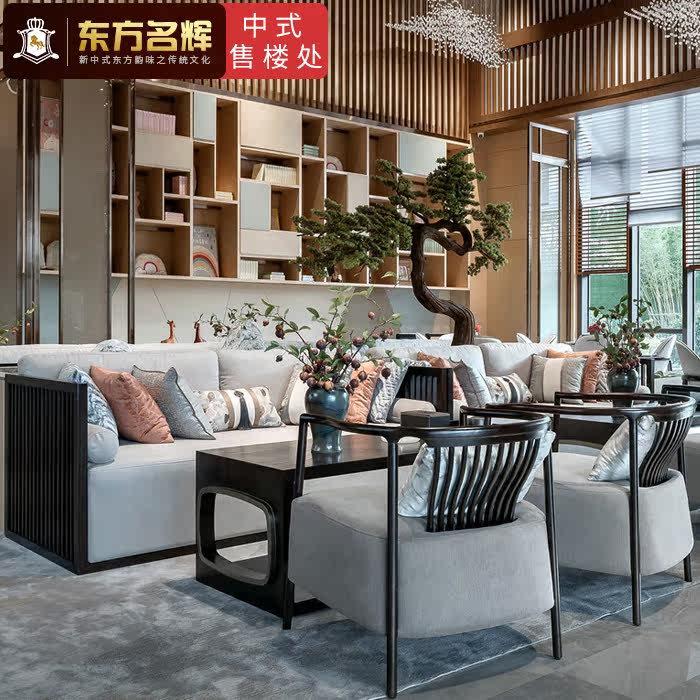 New Chinese Modern Sample House Exhibition Center Solid Wood Reception Negotiation Table and Chair Combination B&B Hotel Leisure Chair Sofa Furniture