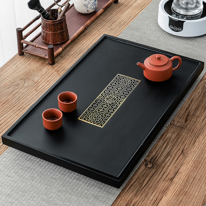 Natural urkin stone tea tray stone tea sea tea table whole block stone special full automatic integrated brief black gold stone
