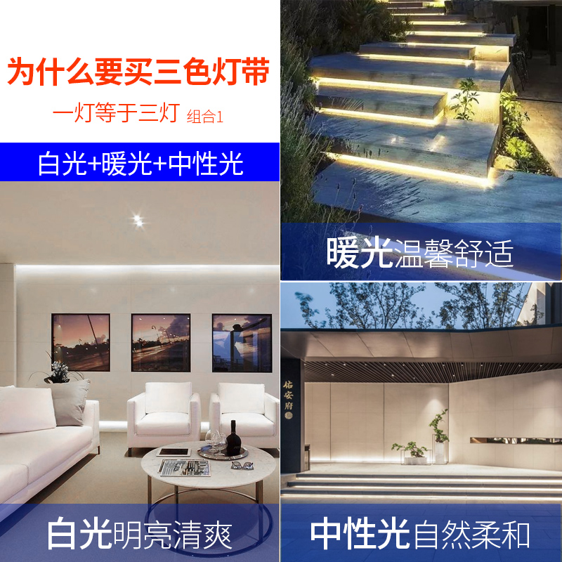 Tri-color led light with color change living room home ceiling long line light slot outdoor waterproof patch 220v light strip