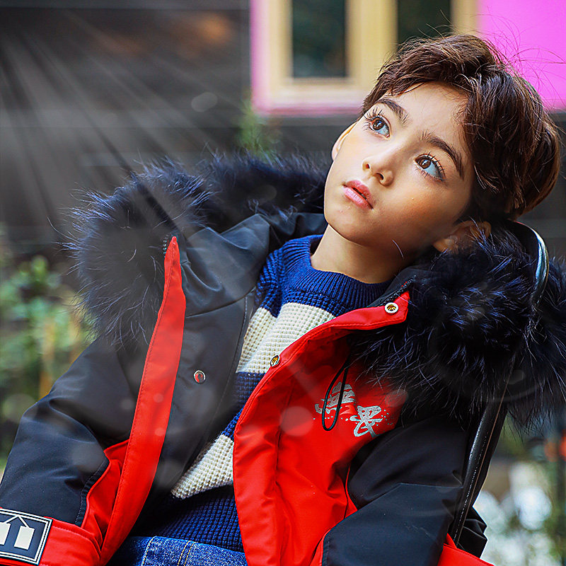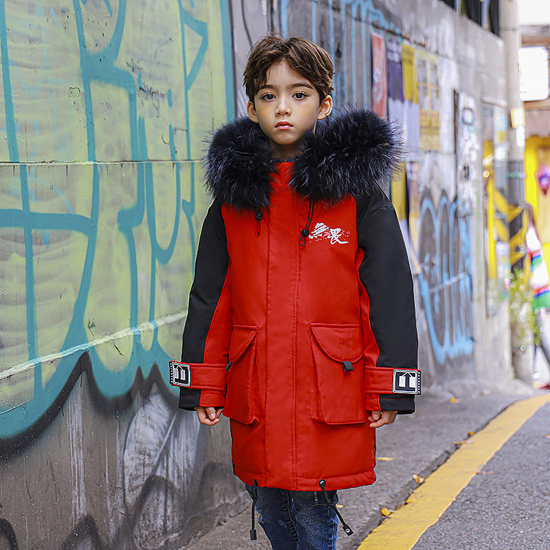 Boys' down jacket medium and long version thickened Klein blue special children's suit children's Korean version of the Western style boy