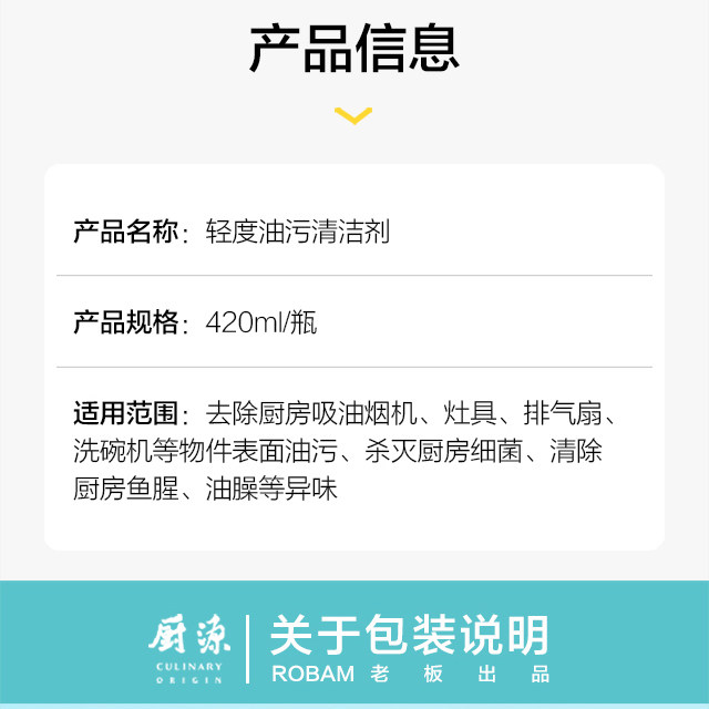 ROBAM Boss Mild Oil Stain Cleaner Kitchen Countertop Range Hood Stove Foam Cleaner (2 Bottles)