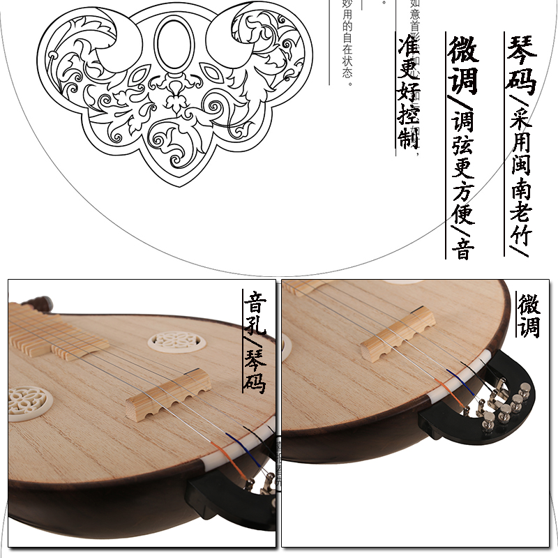 East Africa Black yellow sandalwood fine tuning Liuqin Heinewood full of musical instruments Tupa Dipline Dial Sheet Bracket Professional for examination and play