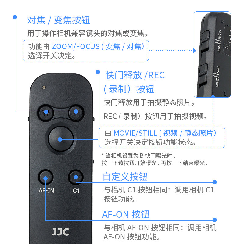 JJC for Sony RMT-P1BT Bluetooth Remote Control Wireless A7C A7RM3 A7M3 A7M4 A7R4A A6400 Black Card 7 A6100 A6600 ZV-1 ZV-E10 FX30