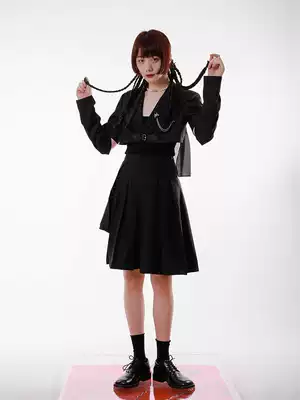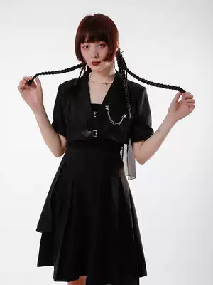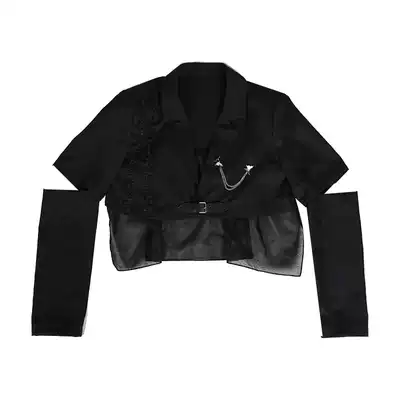 SunsetPark original design coat women Summer thin black short sleeve detachable sleeve leather buckle short suit women