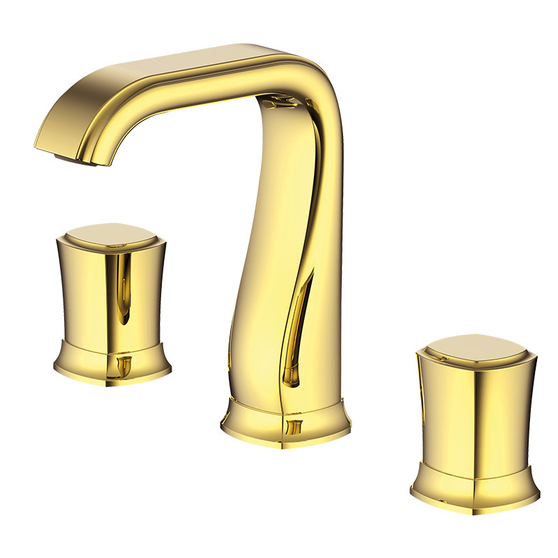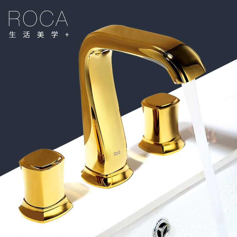 Lehome ROCA three-hole face basin tap light and luxurious two-stage basin European-style retro gold full copper water cage head