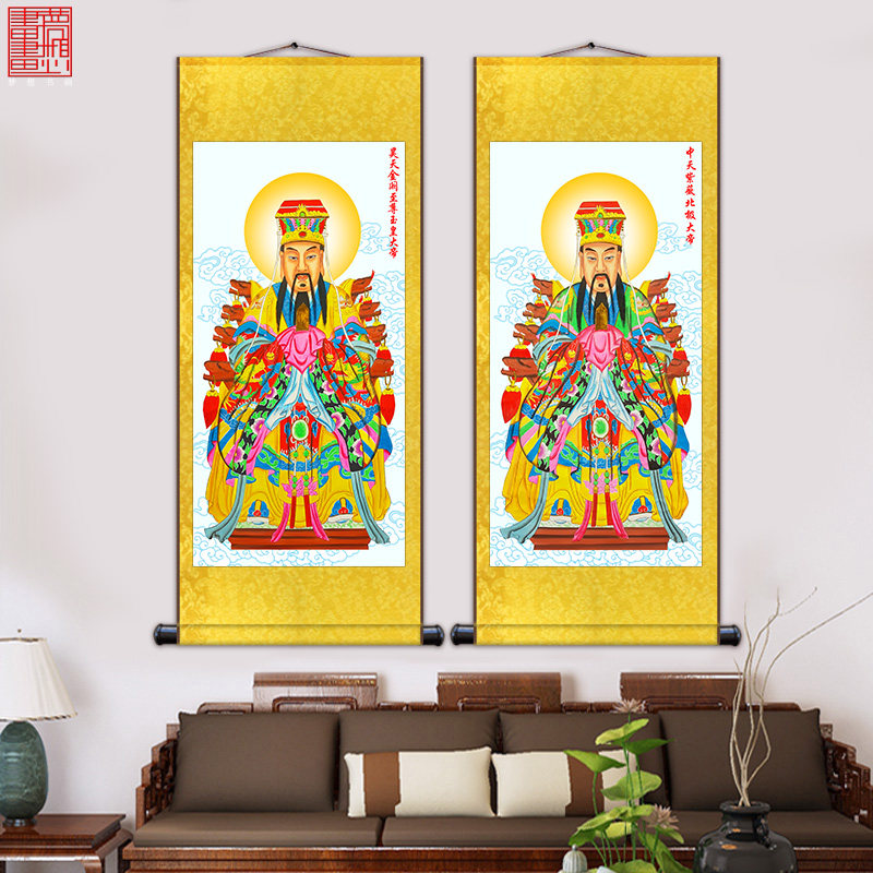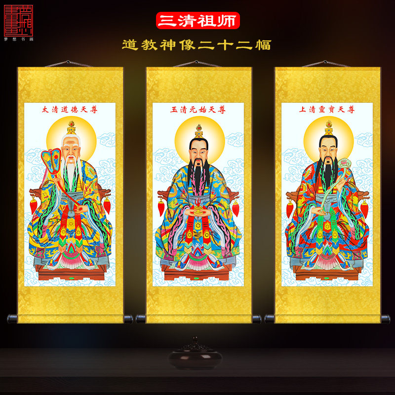 Taoist Sanqing Progenitor Master Worship Portrait of the Portrait Road View Law Painting Jade Emperor Purple Wei the Great Heaven Zum Portrait Silk Mural Painting