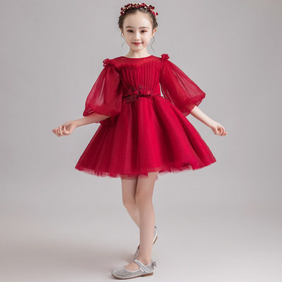 Children's dress Princess Pongbon 2023 new summer gas girl flower child noble walking host drag tail