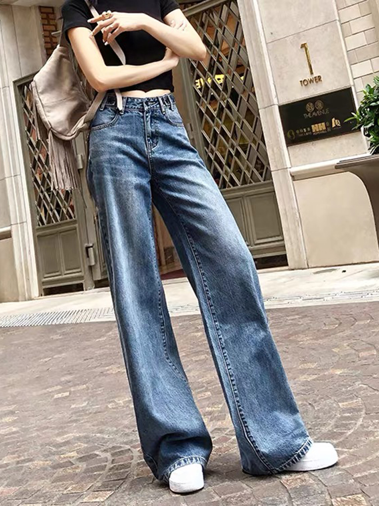 Japanese light luxury jeans in spring and summer 2022 new fashion loose high waist vertical straight tug trousers