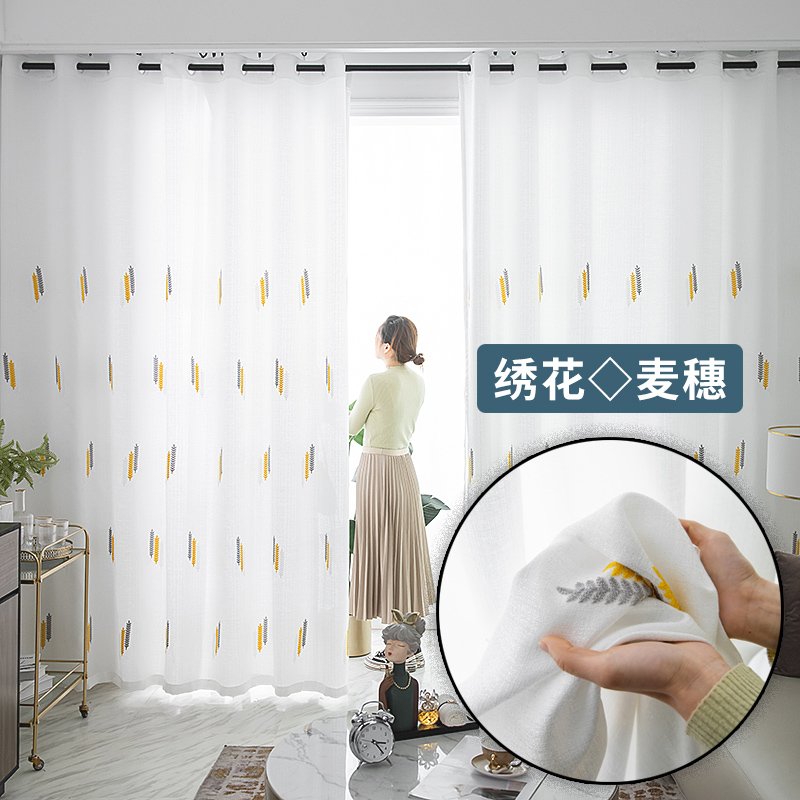 White gauze curtains are not transparent to people, balcony bay windows, bedrooms, semi-shading sunscreen partition windows, finished products without punching installation
